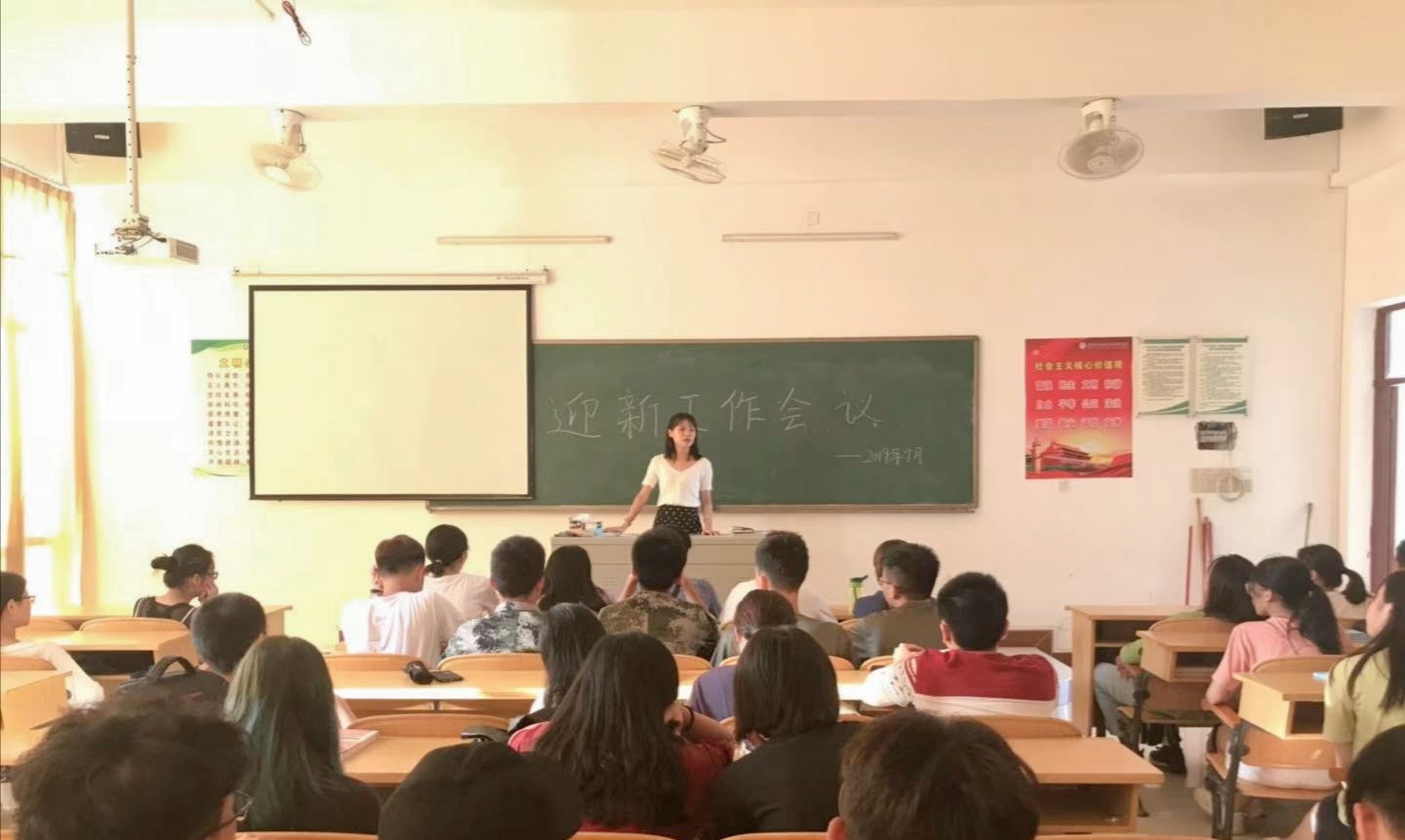 紧接着是辅导员吴淑莹老师对迎新工作者的迎新工作进行安排,要求志愿者要准时到达工作岗位,熟悉迎新的工作流程,工作细心周到;工作人员着装要得体,精神要饱满,贴心服务;同时注意安全及做好防晒措施。