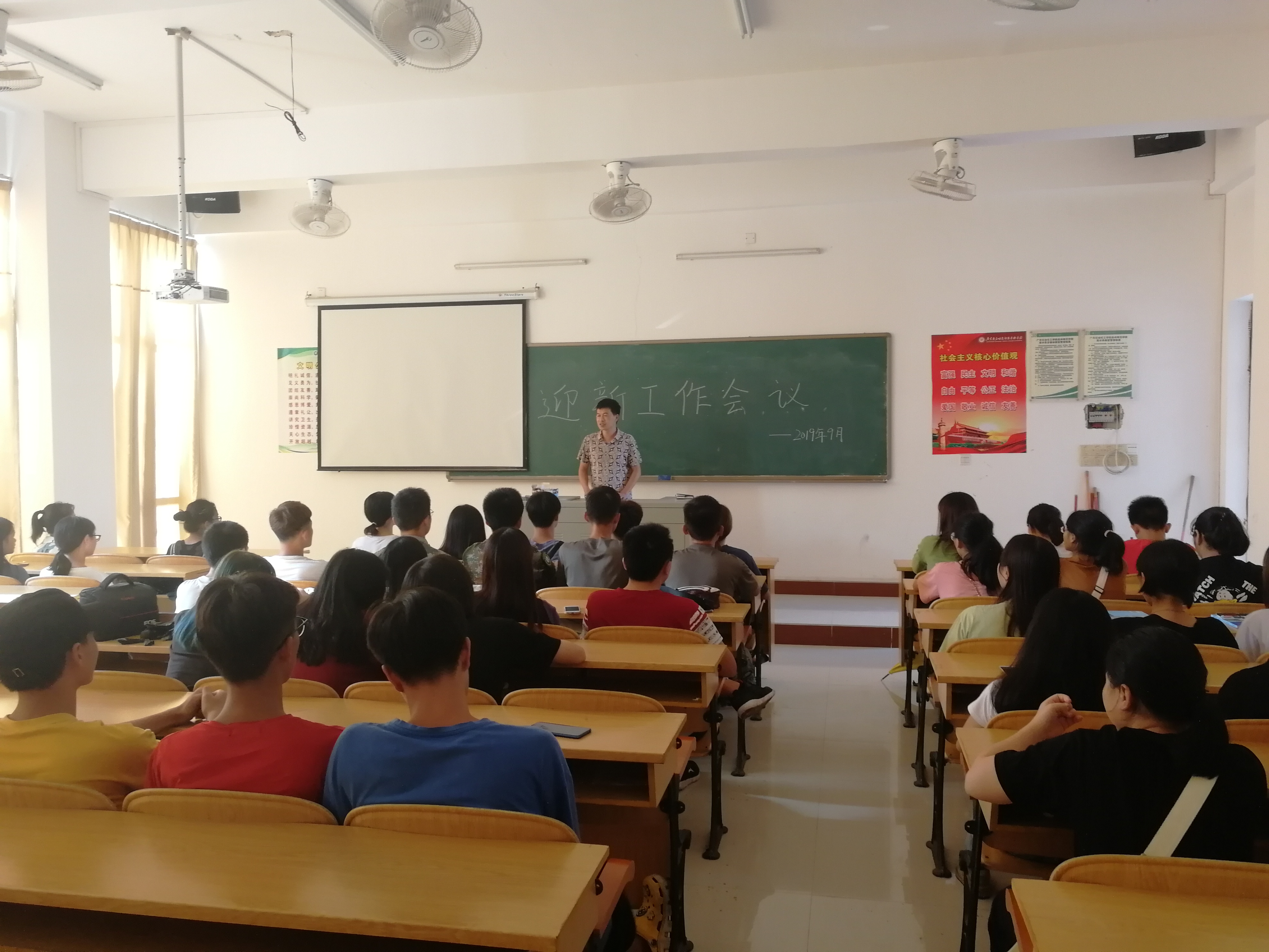 2019年美术学院迎新工作安排会议于2019年9月11日召开。美术学院党支部李炎书记、卢伟雄院长、辅导员吴淑莹及 王卫俭老师亲自带领美术学院学生会团总支干部及美术学院迎新志愿者一起研究布置了迎新准备工作。本次会议主要内容主要有两部分,一部分是迎新志愿者工作动员大会,另一部分是新生班主任及班级助理会议。