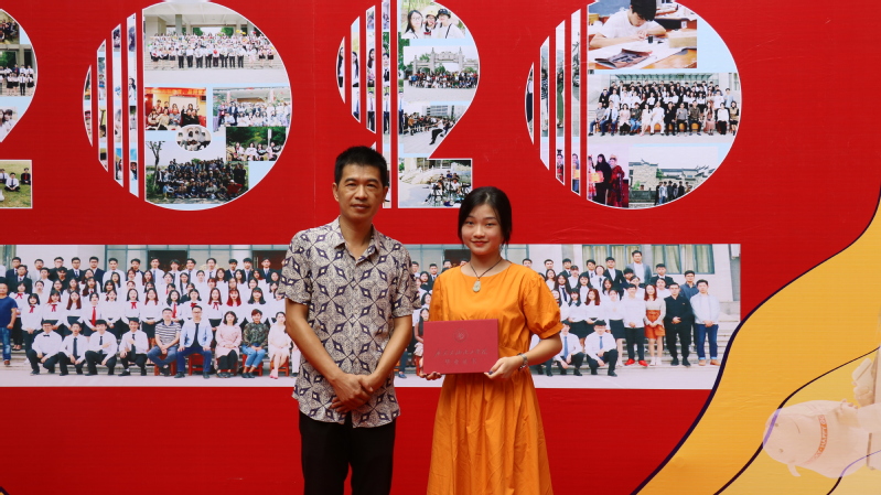 最后在全体老师、同学的见证下,卢伟雄院长亲自为2020届全体毕业生逐一握手及颁发毕业证,并与毕业生合影留念。