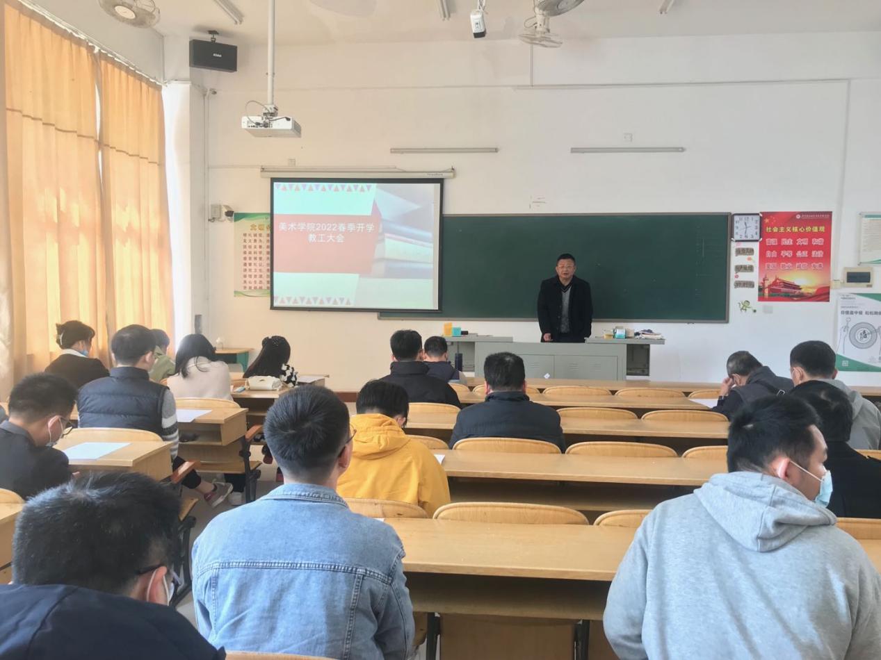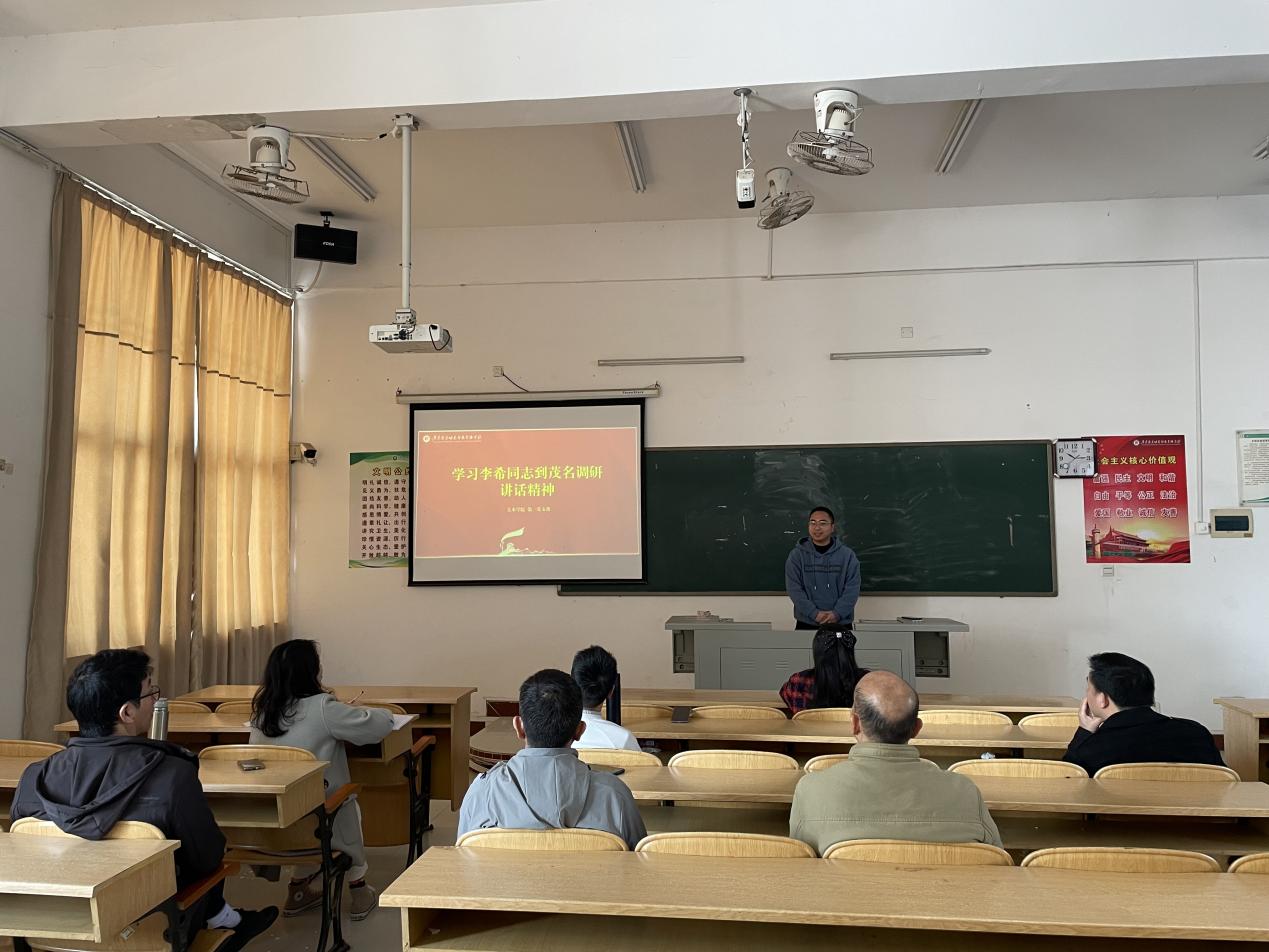 2022年2月24日上午,美术学院在荟文1号楼105室召开全体教职工会议,传达学习贯彻落实省委书记李希同志到茂名调研讲话精神。会议由美术学院党总支书记兼院长李炎同志主持。
