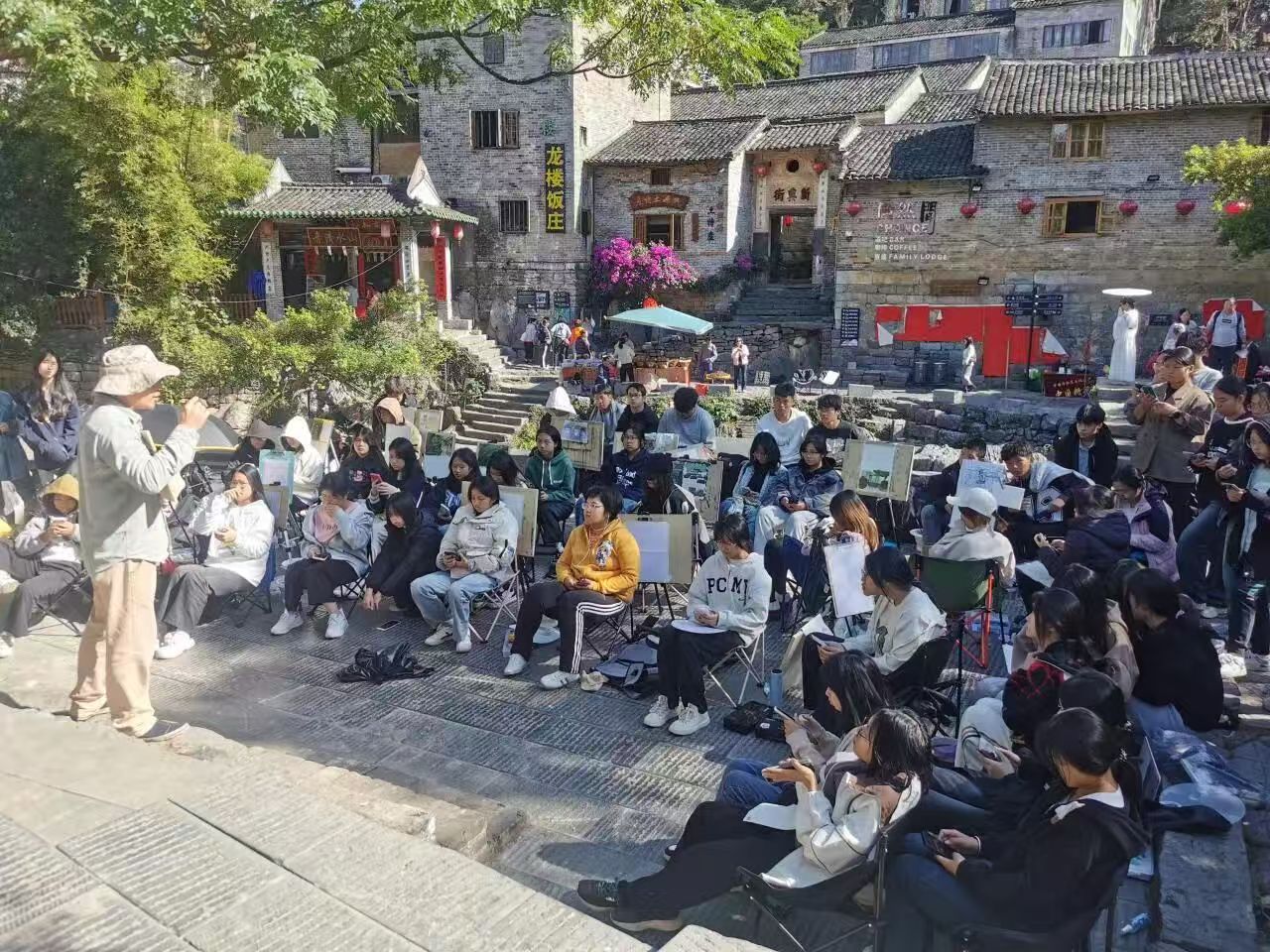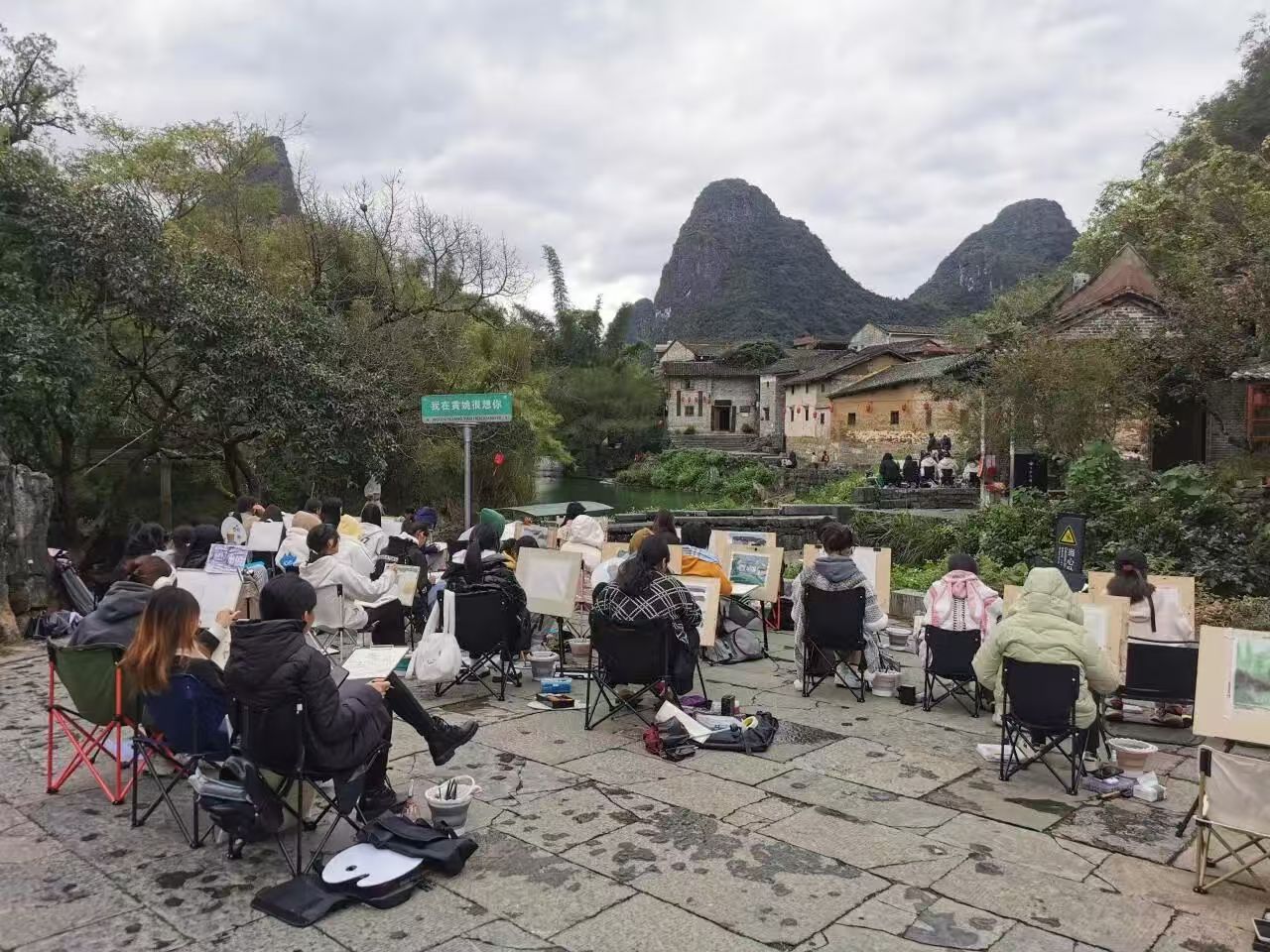 学生在广西黄姚古镇写生