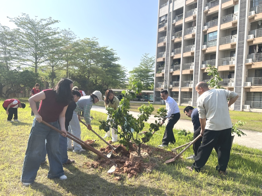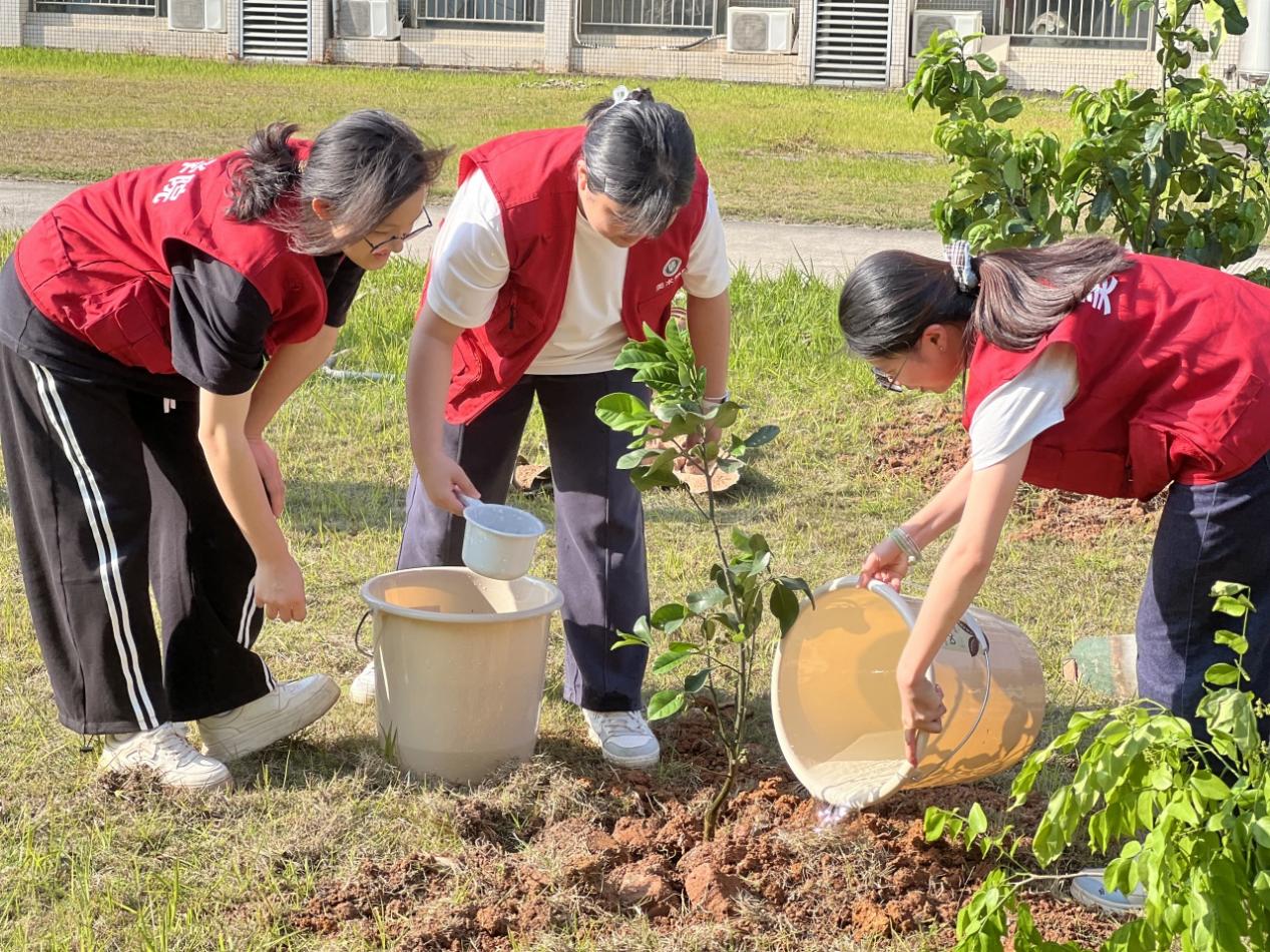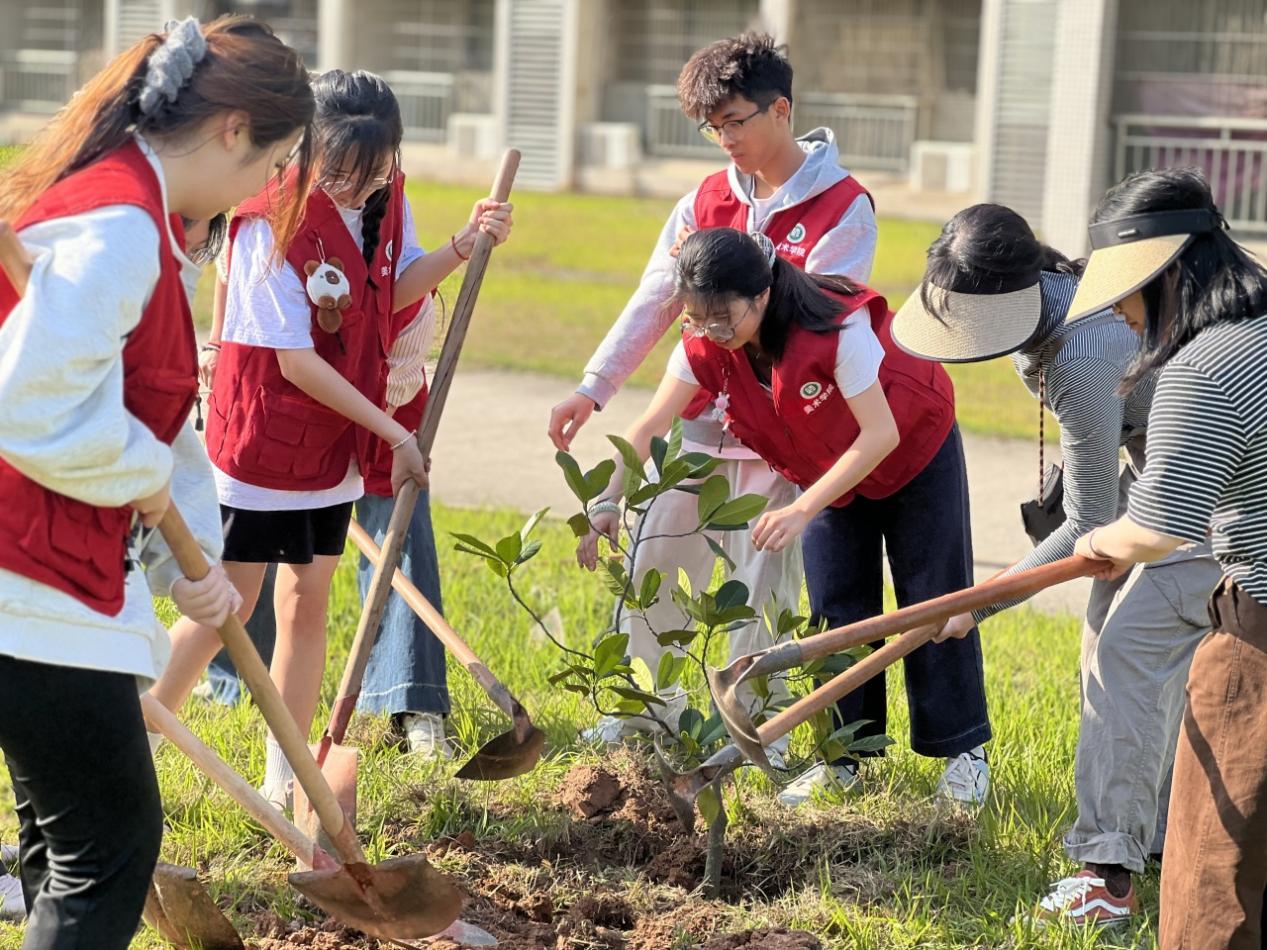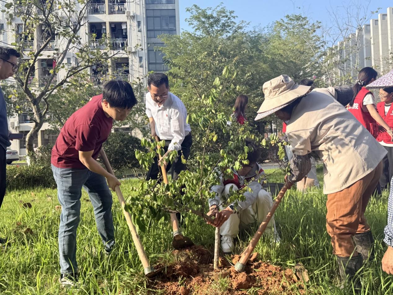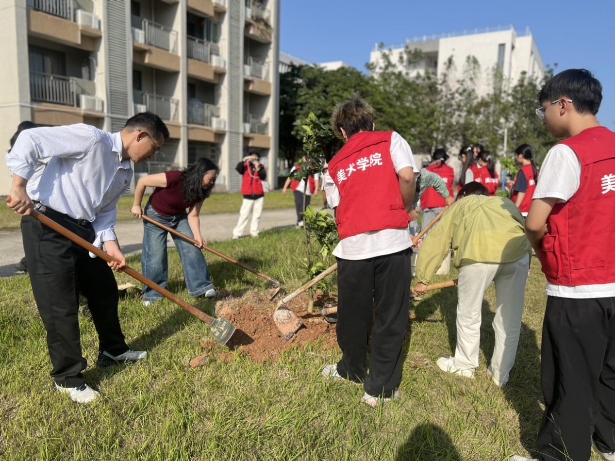 校友代表黄小嫡、庞萍、陈水燕专程返校,与美术学院党员教师、学生志愿者共同挥锹铲土、提水浇灌。活动现场,党员带头、师生携手,在泥土的芬芳中体悟劳动的厚重,在协作的氛围中凝聚信念的力量。大家种下的不仅是绿色的树苗,更是对“绿水青山就是金山银山”理念的生动诠释,是对“人与自然和谐共生”的朴素践行。